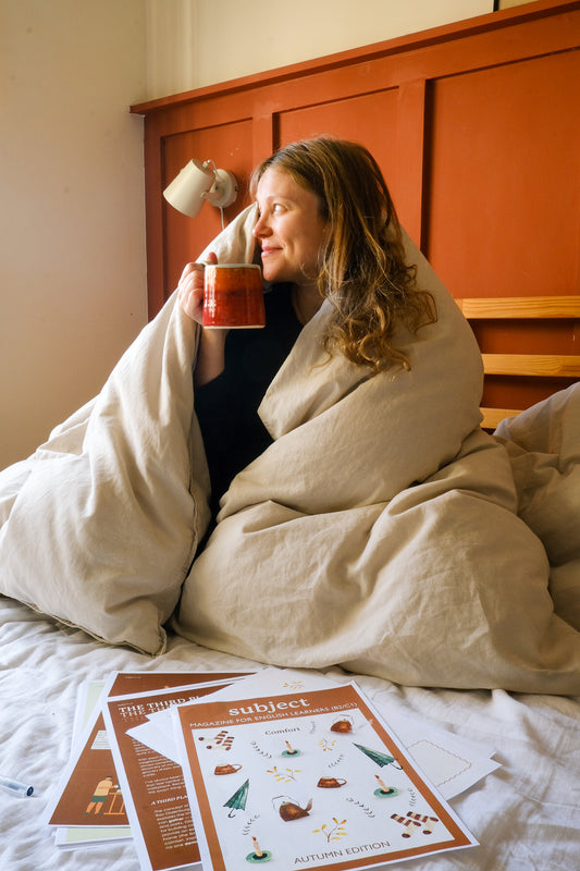 Kolekcja tekstów z wyjaśnionym zaawansowanym słownictwem, dzięki czemu możesz z przyjemnością czytać po angielsku bez ciągłego zaglądania w słownik. Do tego ćwiczenia, aby wiedza została z tobą na dłużej. W najnowszym numerze Comfort ucz się zaawansowanego angielskiego z idealnymi jesieniarskimi tematami 🍂